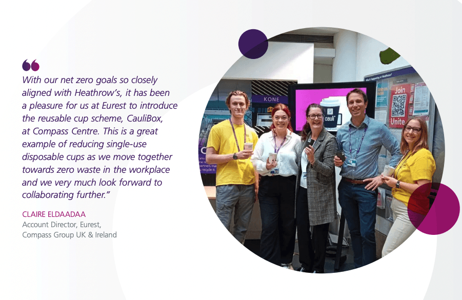 Working in partnership with its caterer Eurest (part of Compass Group), Heathrow began phasing out single use coffee cups for colleagues and visitors, by launching Cauli Reuse System in Oct 2024.